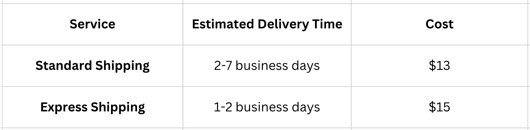 Delivery timeframes are estimates only and not guaranteed.
